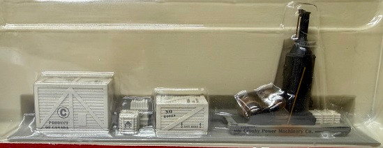 This plastic gondola load includes a vertical hoist and several assorted crates on a 'floor' ready to drop into your gondola.